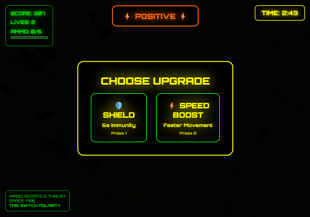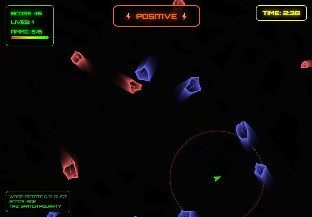 Fly your ship through a neon arena packed with asteroids. Switch your polarity to attract or repel them, dodge the debris, and blast everything in sight. It's fast, flashy, and all about quick reflexes and smart plays. Can you make the leaderboard?